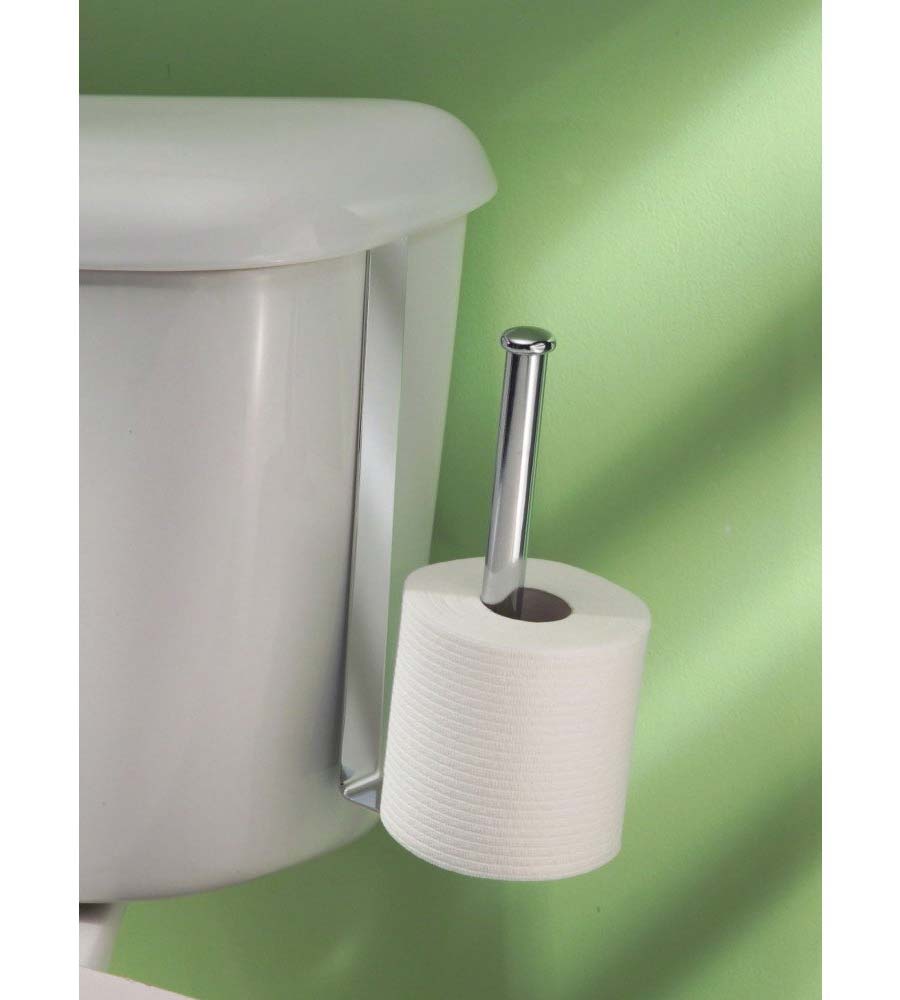 Store an extra roll or two of bath tissue right at your fingertips with this Over Tank Roll Reserve. This Over Tank Roll Reserve hangs over the toilet tank, conserving floor and cabinet space in your bathroom. The Over Tank Roll Reserve features durable metal construction with a chrome finish to complement a wide variety of bathroom decor.
