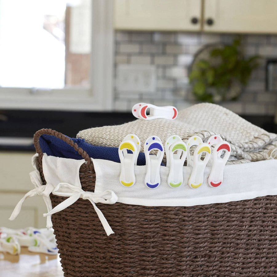 Now you can line dry even delicate garments without damaging them. The gentle Plastic Clothespins securely grip your clothes, but won’t snag the fabric or leave indentations like traditional clothes pins. These clothespins feature durable plastic construction and a strong galvanized steel spring, making them completely rust-proof. The gripping surfaces of the Plastic Clothespins are soft rubber to protect your garments.