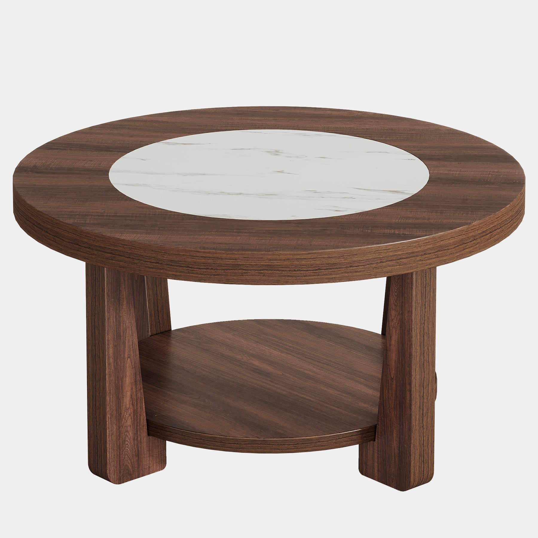 Artful Design – More than just a functional item, our round coffee table features a creative two-tone finish on its 1.57-inch thick tabletop. This piece brings an intriguing and enticing element to your space, reflecting the owner’s excellent taste.